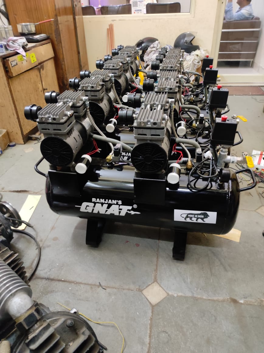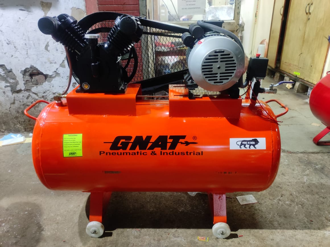 Find the right GNAT air compressor for your work — from painting, tyre shops, and furniture to factories, food, and hospitals. Made in India, ISO 9001:2008 certified, with 1-year warranty and after-sales support.